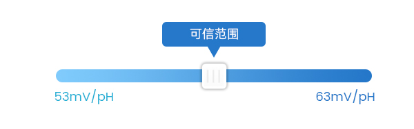 ⑦ 根据能斯特方程理想状态下(25℃)时,理想斜率为59mV/pH,即溶液每变化一个pH值,电极就产生59mv的电位变化。那么理想校正下,斜率应在59mV/pH左右。当斜率的值小于53mV/pH或者大于63mV/pH时,需要更换新的pH电极,所以当校正斜率在53~63mV/pH范围时,结果是可信的。