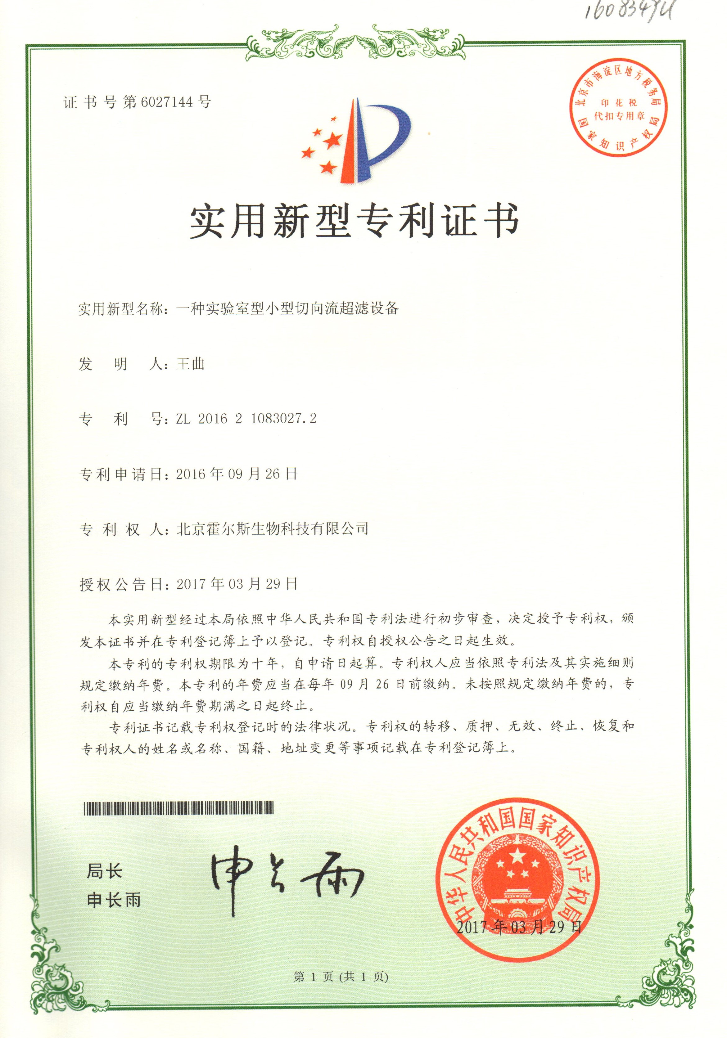 350vip浦京集团获得切向流过滤设备的专利